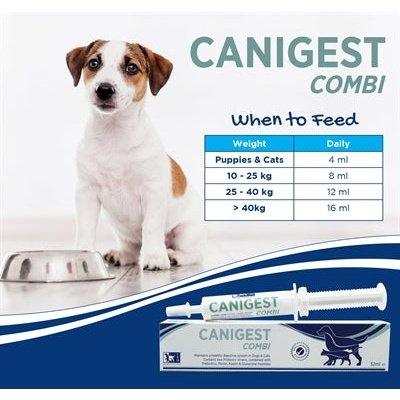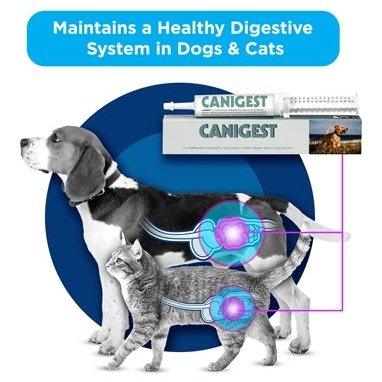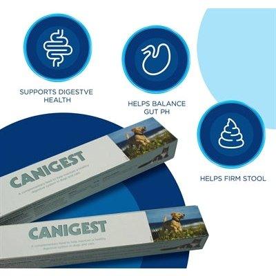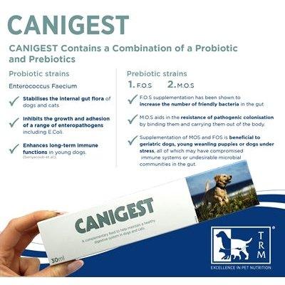TRM Canigest 30 ml is een smakelijke pasta voor honden en katten ter ondersteuning van het spijsverteringsstelsel. De kracht van Canigest ligt in zijn quadrupel action-formule, een krachtige mix van vriendelijke bacteriën die de darmflora herstellen. Het bevat een combinatie van probiotica, prebiotica, glutamine, kaolien en pectine, speciaal ontworpen ter ondersteuning van de behandeling van spijsverteringsproblemen bij huisdieren. Canigest in pastavorm is eenvoudig te doseren en kan helpen bij: