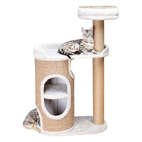 Trixie Krabpaal Falco Lichtgrijs/Bruin 70 x 38 x 117 cm is een uitgebreide maar compacte krabpaal voor de kat, met ligplateaus, schuilplaats, mand en krabvlakken van jute. Een ideale krabpaal om meerdere katten een plekje te geven in kleinere woningen! Deze krabpaal heeft een grondoppervlak van slechts 70 x 38 cm, maar wel maar liefst vier ligplekken. De kat kan in twee schuilplaatsen binnenin liggen, bovenop de ton en ook op het ligplateau met afneembare relax-mand helemaal bovenin. De schuilplaats is bovendien bekleed met heerlijk zacht pluche/fleece en de krabpaal is voorzien van wendbare kussens. De buitenzijde van de krabpaal is bekleed met jute, om de kat voldoende krabmogelijkheden te bieden en zo jouw interieur te beschermen.