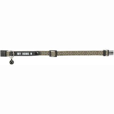 De Trixie Kattenhalsband My Home Olijf Groen is een traploos verstelbare kattenhalsband met adreslabel, belletje en kliksluiting die eenvoudig opent wanneer nodig.