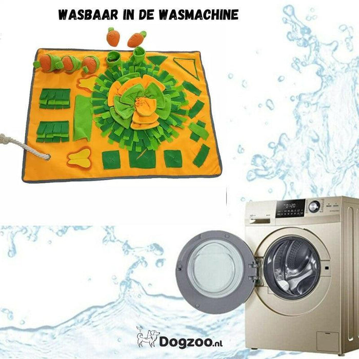 Deze IQ trainer hond - snuffelmat "De weg naar wortels" van Dogzoo is uitwasbaar zodat hij altijd schoon blijft en jouw kleine viervoeter altijd veilig en lekker kan snuffelen!