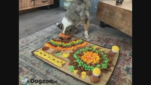 Schrokt je hond ook zijn eten op zonder te kauwen? Of ben je gewoon opzoek naar een leuke uitdaging voor je hond of kat? Bestel dan het XXL Toverbos snuffelmat van Dogzoo, deze snuffelmat heeft heel veel verstop plekjes.. een echte must have!