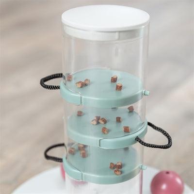 De Trixie Cat Activity Gambling Tower Kunststof is een interactieve toren die speciaal is ontworpen om de mentale en fysieke activiteit van jouw kat te stimuleren. Met drie schijven en vier afdekdoppen biedt deze toren een spannende uitdaging, waarbij katten hun vaardigheden kunnen testen om snacks te verkrijgen. Voorzien van slipvaste rubberen voetjes, zodat de toren stevig op zijn plek blijft staan tijdens het spelen. De afdekdoppen zijn vaatwasserbestendig voor gemakkelijke reiniging. De toren wordt geleverd met een handleiding voor training, waardoor je het spel optimaal kunt benutten.