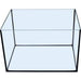 Glazen aquarium zonder bovenkap. De naden van het aquarium zijn met duurzame zwarte kit gedicht, en houden de panelen op zijn plaats.