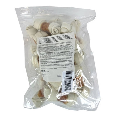 This Petsnack product is a delicious knotted bone made of white buffalo skin with an extra seasoning of a dried chicken strip. The bone is not onl...