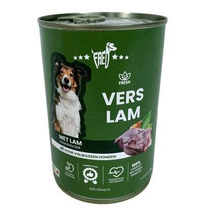 Fred Can Fresh Lamb 12X400 gr The Fred Canned Fresh Lamb 12X400 gr is a complete dog food for adult dogs with lamb and a high moisture content. Wit...