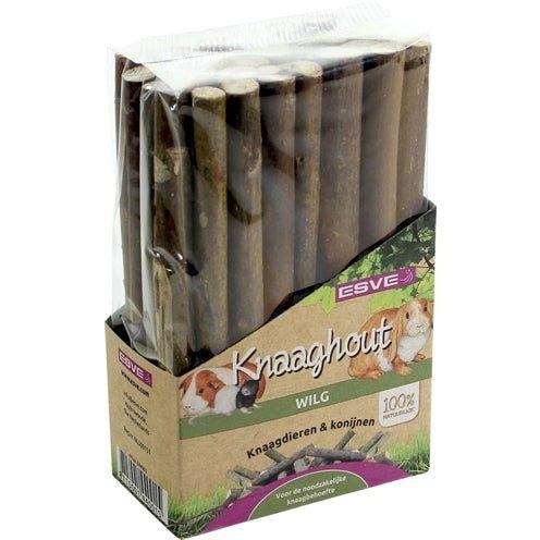 Esve Gnaw Wood Bird Willow of 10 cm is a fun demolition toy for your bird, made from natural willow twigs. Most birds like nothing more than demolition and that is why these gnaws are ideal! These willow branches are 100% natural and ideal for crumbling, shredding and gnawing. This is a natural need for your bird that keeps your animal mentally and physically challenged and prevents boredom. In addition, playing with these twigs helps keep the beak in good condition. Natural and good for hours of fun!