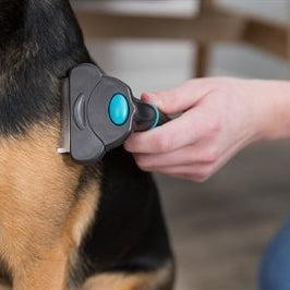 Does your dog have a very thick coat, does it suffer from felting or does it have a lot of loose hairs in the undercoat that get stuck in the coat? Then this Trixie Carding coat comb is ideal. This handy dog comb effortlessly removes excess hair from the undercoat. It is also particularly suitable for simple defelting and thinning of the coat. You can easily change the attachments using the click mechanism on the handle, which has a non-slip rubber coating. This makes combing comfortable for both you and your dog, or your horse, because this comb is also suitable for that!
