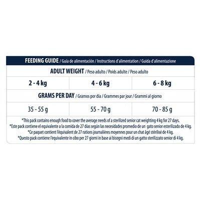 - Complete pet food for older sterilized and neutered cats from ten years of age