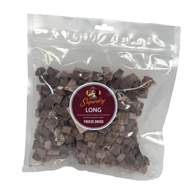 Petsnack Superdry Long is een gevriesdroogde traktatie van 100% runderlong, perfect als smakelijk tussendoortje voor je hond. Dankzij het vriesdroogproces blijven voedingsstoffen optimaal behouden, terwijl de lichte structuur zorgt voor een knapperige en eiwitrijke snack.