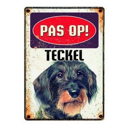 The Plenty Gifts Tin Dachshund Watch Board measuring 21 x 14.8 cm is a nice tin watch board with the print of a dog and the text 'beware!'. The sign is made of tin with sturdy details that give the sign a weathered appearance. Cool for the door or in the garden! The sign is printed with an image and name of the breed and the text 'beware!' above. The board is equipped with holes for easy mounting.