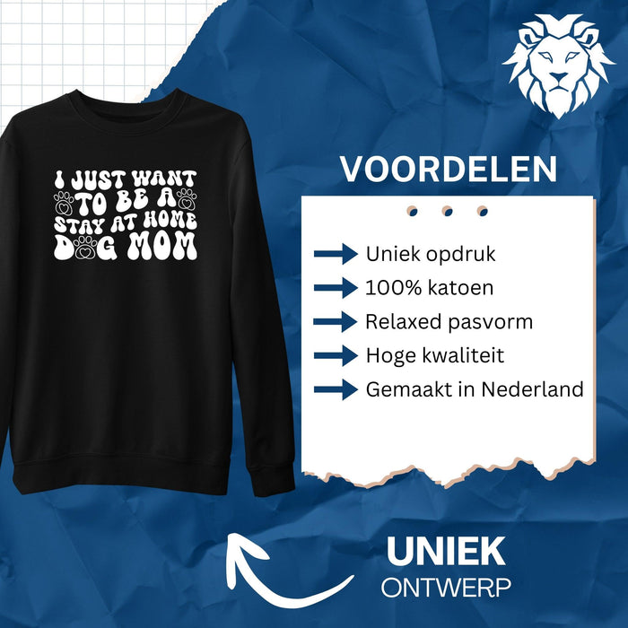 Ben je een hondenliefhebber en op zoek naar een leuke en stoere sweater met print van hoge kwaliteit dat jouw unieke stijl toont en laat zien? Deze sweater met tekst "I Just Want To Be A Stay At Home Dog Mom" is dan precies wat je zoekt!