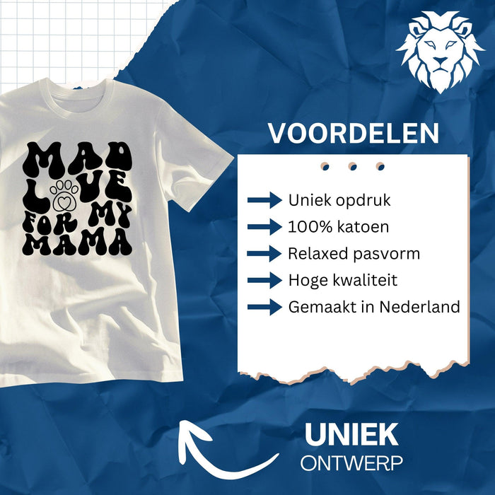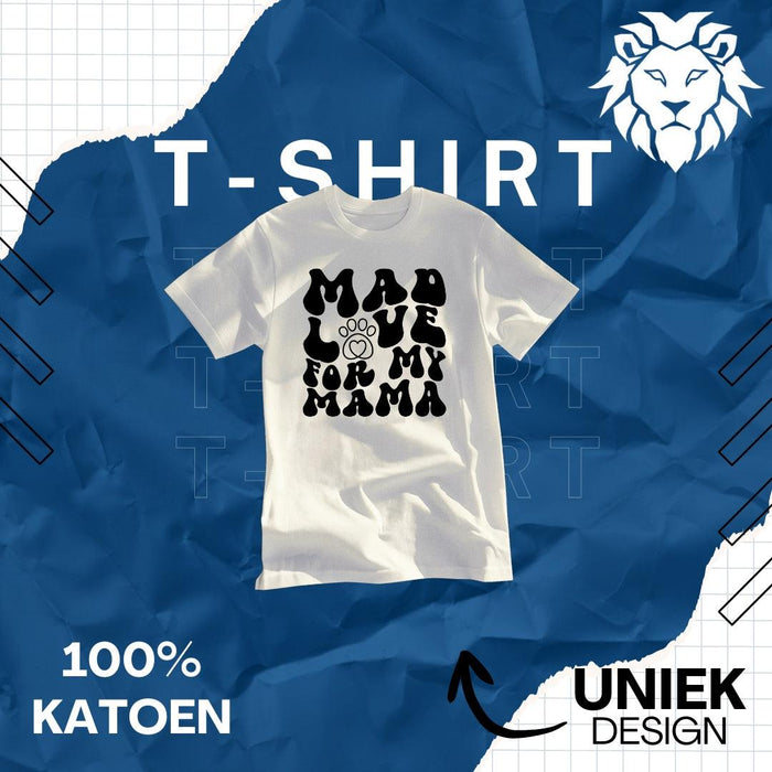 Ben je een dierenliefhebber en op zoek naar een leuke en stoere t-shirts met print van hoge kwaliteit dat jouw unieke stijl toont en laat zien? Deze shirts met tekst "Mad Love for My Mama" is dan precies wat je zoekt!