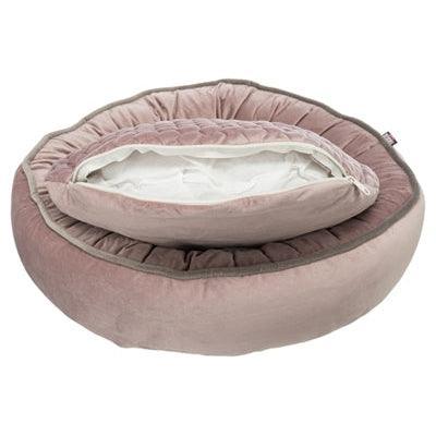 The Trixie Dog Bed Igloo Livia Pink 50 x 50 cm is a cozy dog bed in velor look with plush interior and manoeuvrable cushion. Your dog can dream away for hours in this basket! This basket has a nice round shape. The outside has a nice velvet look and the inside has plush upholstery. The polyester fleece filling makes your dog comfortable and the non-slip bottom ensures that your animal can easily get in and out of the basket. The nice cushion is also manoeuvrable and has two different designs, so you can choose the look of the basket yourself!