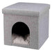 The Trixie Relax Igloo Alois Gray 40 x 38 x 38 cm is a shelter for the cat, square with plush cushion and equipped with a lid with storage compartment. Your cat always has its toys nearby with this fun relaxing igloo from Trixie! This cute square shelter for the cat has a removable, padded lid. Below this you will find a storage compartment in which you can store all your cat's favorite toys. Your cat can enter the shelter through the large opening at the front and inside the igloo will find a comfortable cushion with plush covering (polyester) and polyester fleece filling, to dream away in. The igloo itself is covered with a luxurious, woven fabric in gray color. The shape of the igloo gives the cat a protected feeling and provides a nice, safe place within the household.