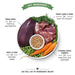 Samenstelling: Biologisch lamsvlees (26%), biologisch varkensvlees (13%), biologisch rundvlees (10%) biologische kip (5%), biologische wortelen (3%), biologische erwten (3%), biologische spelt, vitamines en gechelateerde mineralen. Kruiden en plantaardige producten.