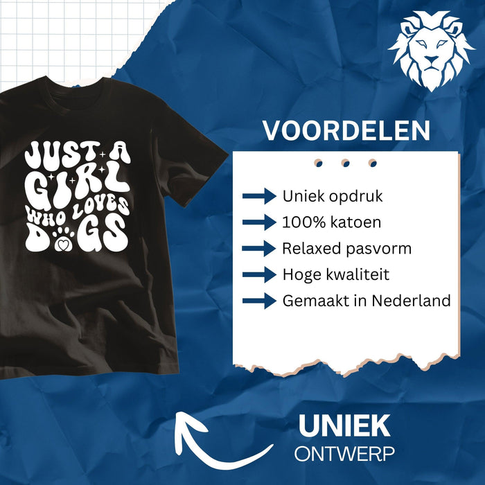 Ben je een dierenliefhebber en op zoek naar een leuke en stoere t-shirts met print van hoge kwaliteit dat jouw unieke stijl toont en laat zien? Deze shirts met tekst "Just a Girl Who Loves Dogs" is dan precies wat je zoekt!