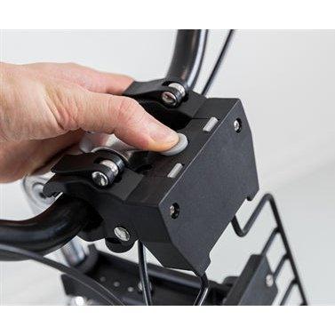 - De houder klemt om het stuur, waarna je de mand op het frame kunt plaatsen