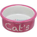 De Trixie Voerbak Drinkbak Keramiek Roze / Lichtgrijs 12 cm 300 ml is een vrolijk gekleurde, moderne voerbak of drinkbak voor de kat, uitgevoerd in leuke kleuren met een leuke opdruk. Deze bak is gemaakt van gelakt keramiek: naast makkelijk te reinigen maakt dit hem ook geschikt voor zowel water, droogvoer als natvoer. De bak heeft een vrolijk gekleurde buitenkant met op de bodem een leuke opdruk in bijpassende kleur. Geschikt als vervangende bak voor de voer- en waterbakset van Trixie met Trixie-nummer 24791.
